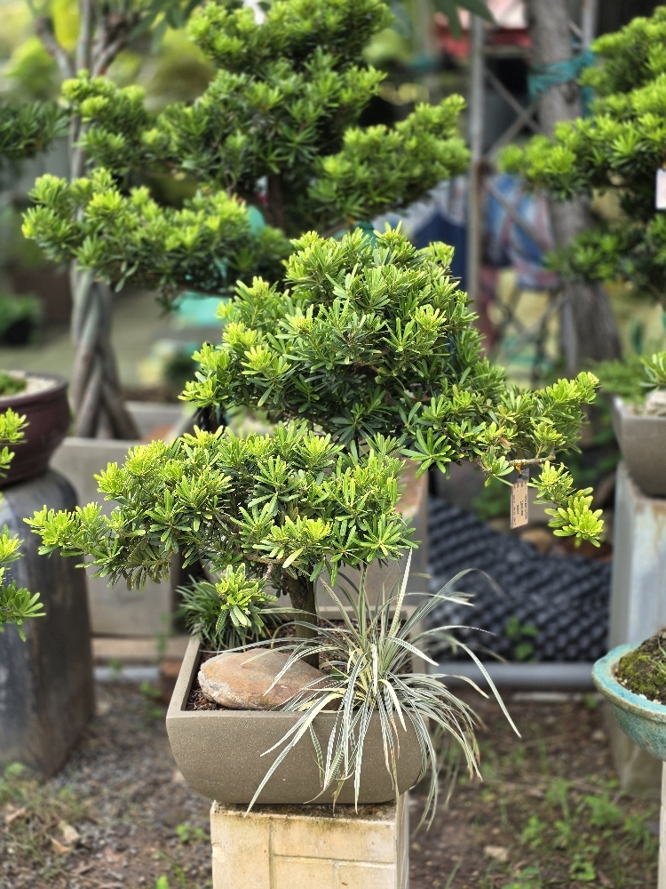 Vạn Niên Tùng (Podocarpus macrophyllus), hay còn gọi là Vạn Niên Tùng, là loài cây thân gỗ thường xanh, có nguồn gốc từ Nhật Bản và các vùng ôn đới châu Á. Loài cây này được biết đến với khả năng chịu đựng khắc nghiệt của thời tiết, sự trường tồn qua nhiều thế kỷ, và vẻ đẹp độc đáo của lá kim xanh mướt quanh năm. Đặc tính này làm cho Vạn Niên Tùng trở thành lựa chọn hoàn hảo để tạo nên những tác phẩm Bonsai trường tồn với thời gian.