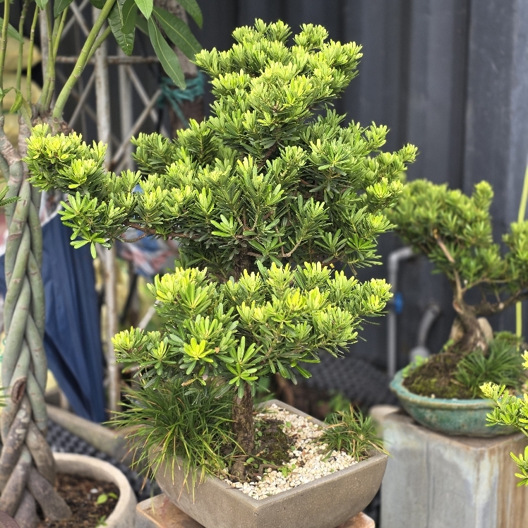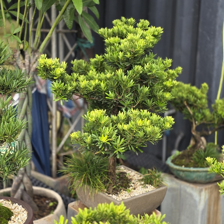 Vạn Niên Tùng (Podocarpus macrophyllus), hay còn gọi là Vạn Niên Tùng, là loài cây thân gỗ thường xanh, có nguồn gốc từ Nhật Bản và các vùng ôn đới châu Á. Loài cây này được biết đến với khả năng chịu đựng khắc nghiệt của thời tiết, sự trường tồn qua nhiều thế kỷ, và vẻ đẹp độc đáo của lá kim xanh mướt quanh năm. Đặc tính này làm cho Vạn Niên Tùng trở thành lựa chọn hoàn hảo để tạo nên những tác phẩm Bonsai trường tồn với thời gian.