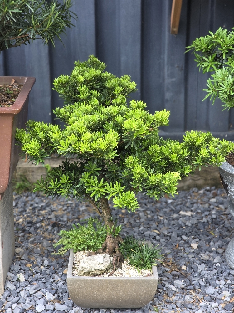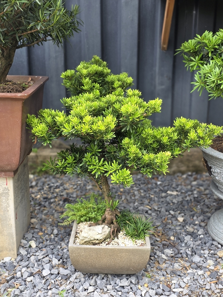 Vạn Niên Tùng (Podocarpus macrophyllus), hay còn gọi là Vạn Niên Tùng, là loài cây thân gỗ thường xanh, có nguồn gốc từ Nhật Bản và các vùng ôn đới châu Á. Loài cây này được biết đến với khả năng chịu đựng khắc nghiệt của thời tiết, sự trường tồn qua nhiều thế kỷ, và vẻ đẹp độc đáo của lá kim xanh mướt quanh năm. Đặc tính này làm cho Vạn Niên Tùng trở thành lựa chọn hoàn hảo để tạo nên những tác phẩm Bonsai trường tồn với thời gian.