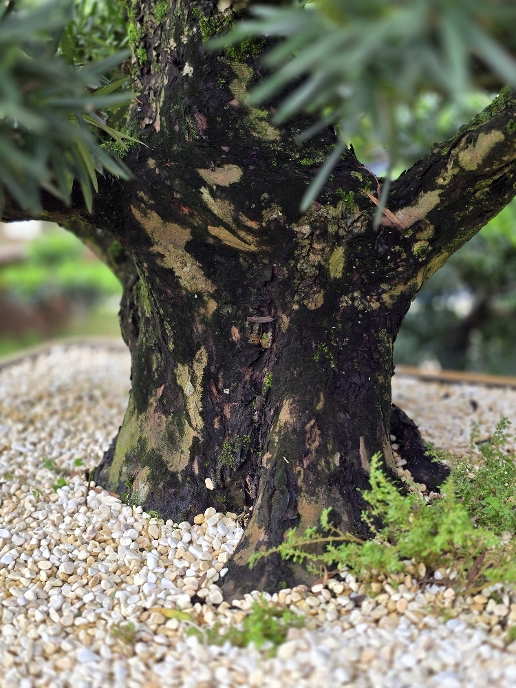 • Thân cây chắc khỏe, rễ nổi bật: Thân cây uốn lượn, có nhiều vết tích thời gian, tạo nên vẻ đẹp cổ kính và mạnh mẽ. Hệ thống rễ nổi bật, góp phần tạo nên sự cân bằng và vững chãi cho toàn bộ cây.