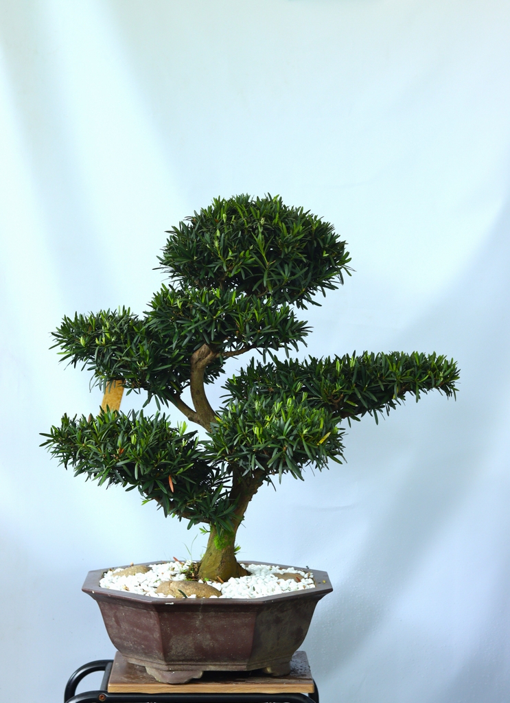 Vạn Niên Tùng (Podocarpus macrophyllus), hay còn gọi là Vạn Niên Tùng, là loài cây thân gỗ thường xanh, có nguồn gốc từ Nhật Bản và các vùng ôn đới châu Á. Loài cây này được biết đến với khả năng chịu đựng khắc nghiệt của thời tiết, sự trường tồn qua nhiều thế kỷ, và vẻ đẹp độc đáo của lá kim xanh mướt quanh năm. Đặc tính này làm cho Vạn Niên Tùng trở thành lựa chọn hoàn hảo để tạo nên những tác phẩm Bonsai trường tồn với thời gian.