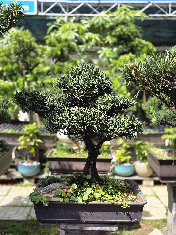 Vạn Niên Tùng (Podocarpus macrophyllus), hay còn gọi là Vạn Niên Tùng, là loài cây thân gỗ thường xanh, có nguồn gốc từ Nhật Bản và các vùng ôn đới châu Á. Loài cây này được biết đến với khả năng chịu đựng khắc nghiệt của thời tiết, sự trường tồn qua nhiều thế kỷ, và vẻ đẹp độc đáo của lá kim xanh mướt quanh năm. Đặc tính này làm cho Vạn Niên Tùng trở thành lựa chọn hoàn hảo để tạo nên những tác phẩm Bonsai trường tồn với thời gian.