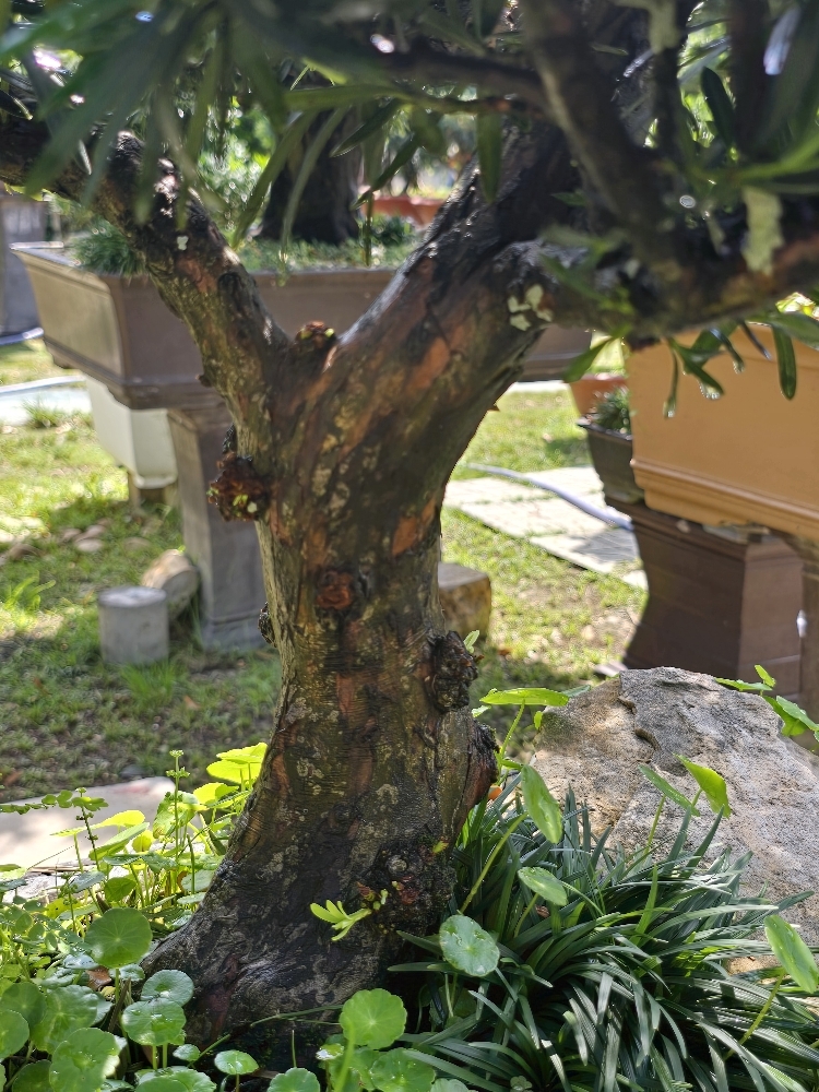 • Thân cây chắc khỏe, rễ nổi bật: Thân cây uốn lượn, có nhiều vết tích thời gian, tạo nên vẻ đẹp cổ kính và mạnh mẽ. Hệ thống rễ nổi bật, góp phần tạo nên sự cân bằng và vững chãi cho toàn bộ cây.